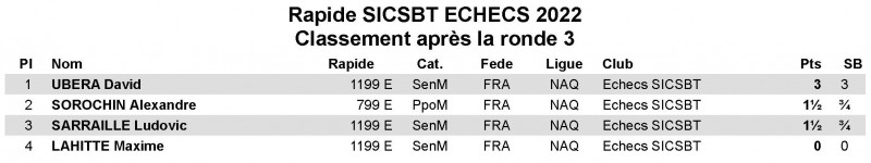 Après 3 parties, le classement est le suivant :
