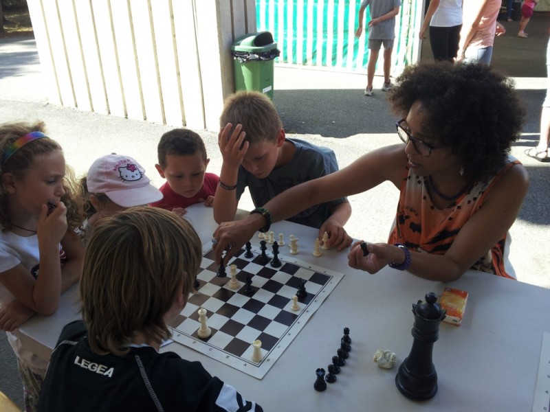 Nous avons donc représenté les Echecs lors d'une belle journée ensoleillée, au Parc des Sports Intercommunal Jean André MAYE où notre stand a été visité principalement par les enfants. Voici quelques photos du stand pour se mettre dans l'ambiance...